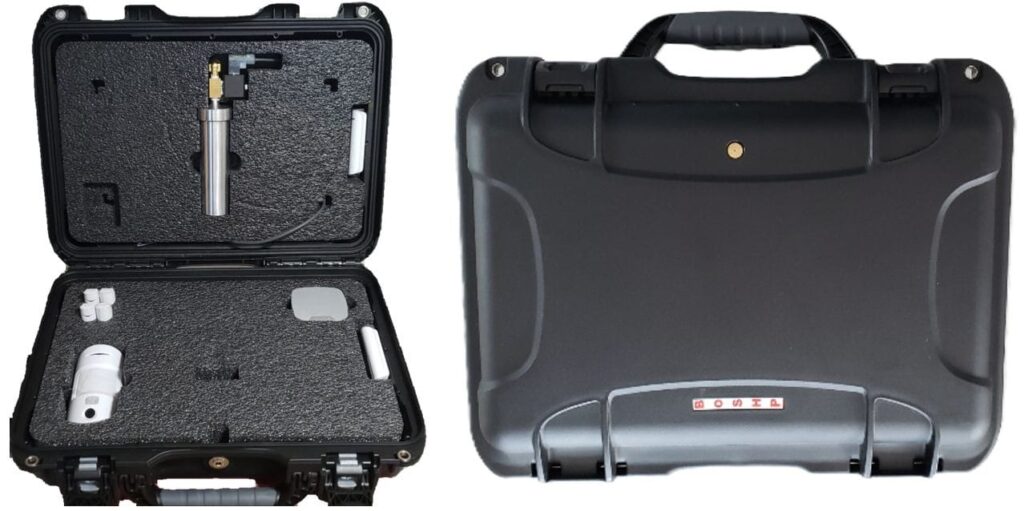 Le système est livré assemblé dans une valise robuste, afin de préserver l’intégrité du matériel et de faciliter la mise en place. L’objectif est de disposer d’un ensemble prêt à être déployé et pilotable via l’écosystème AJAX (centrale, relais, capteurs, sirène, télécommandes).